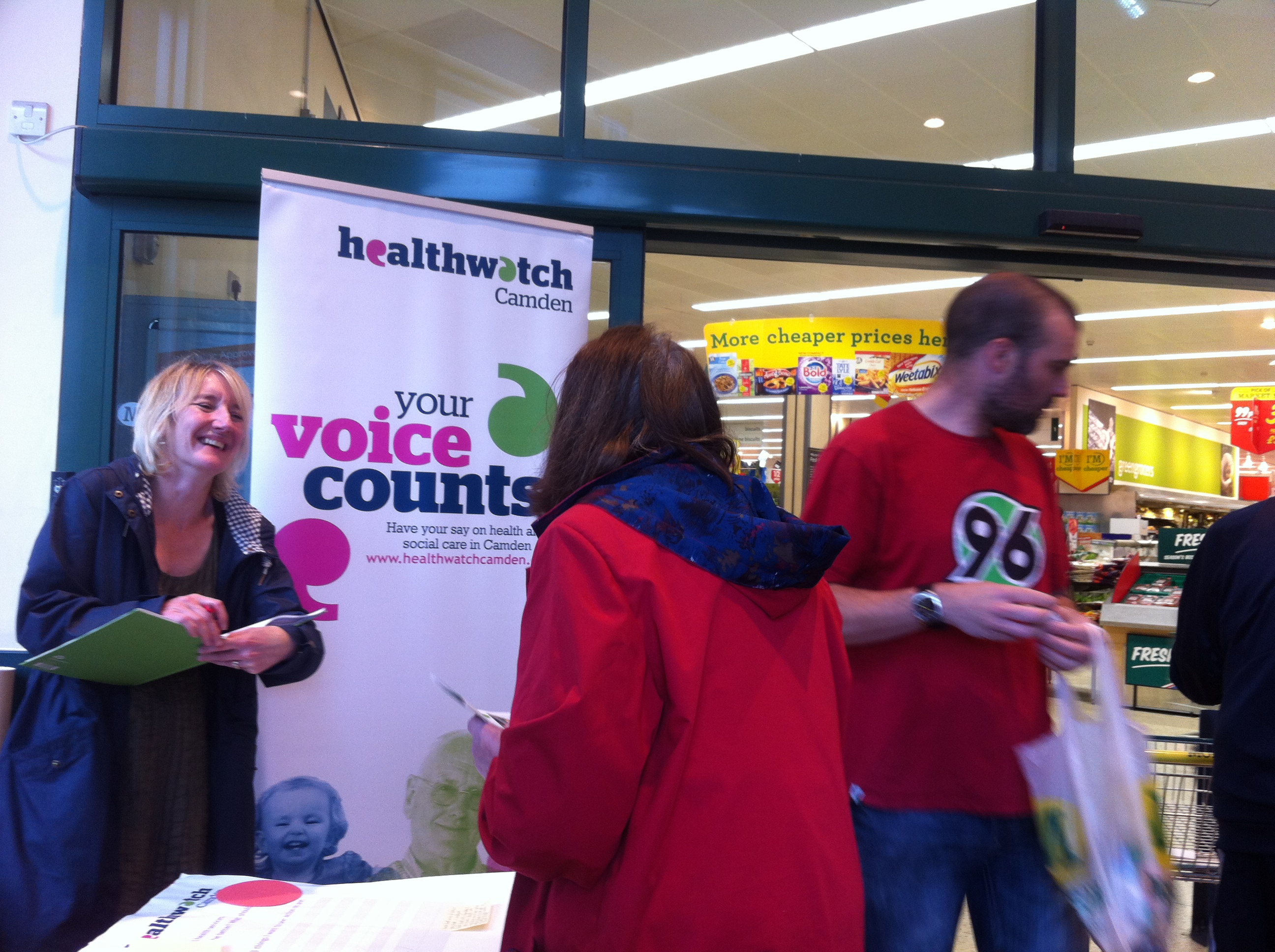 Ambassadors – These volunteers talk to residents, patients and service users on how Healthwatch Camden can help them get the best out of health and social care services in Camden. They tell people about us, listen to comments and feed them back to us. Usually to the policy and insight Manager, who’ll then see if there is anything we can act on.