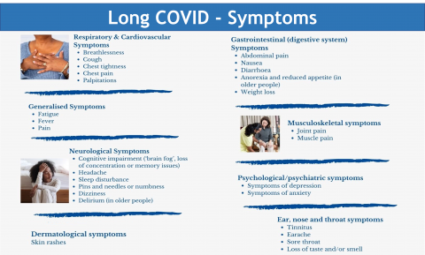 For some people, coronavirus (COVID-19) can cause symptoms that last weeks or months after the infection has gone. This is sometimes called post-COVID-19 syndrome or ‘Long COVID’. How long it takes to recover from COVID-19 is different for everybody.